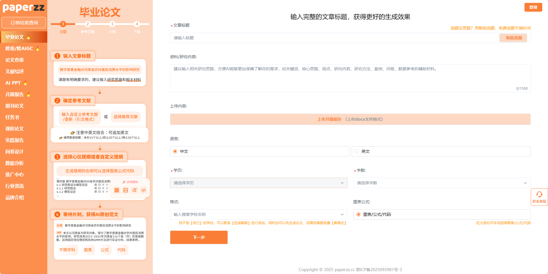 从输入标题到生成初稿,从文献整理到格式适配,从降重降 AIGC 到答辩 PPT,Paperzz 为毕业生提供了一站式学术解决方案,让每一位学子都能在毕业季轻装上阵,把时间和精力留给核心研究内容,顺利完成学业、迎接人生新起点。