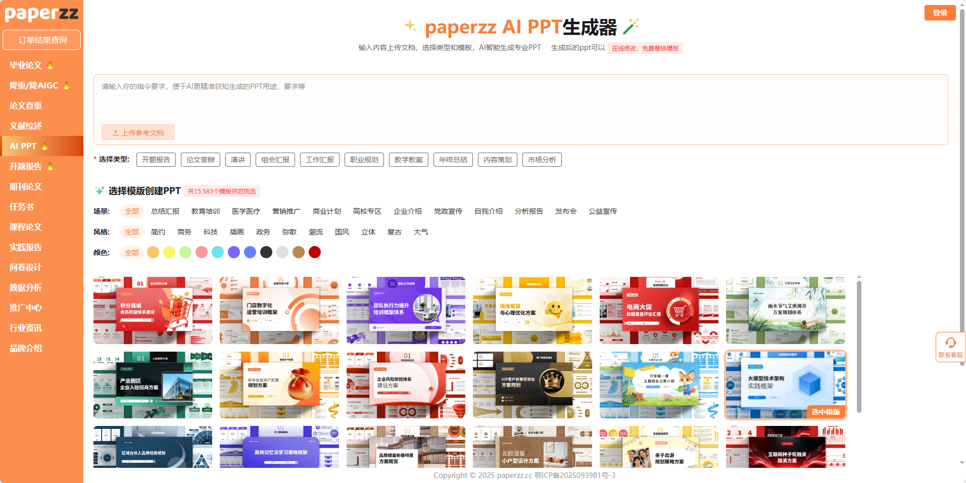 Paperzz 拥有15,583 + 专业模板,覆盖全场景、多风格,让你无需从零开始设计: